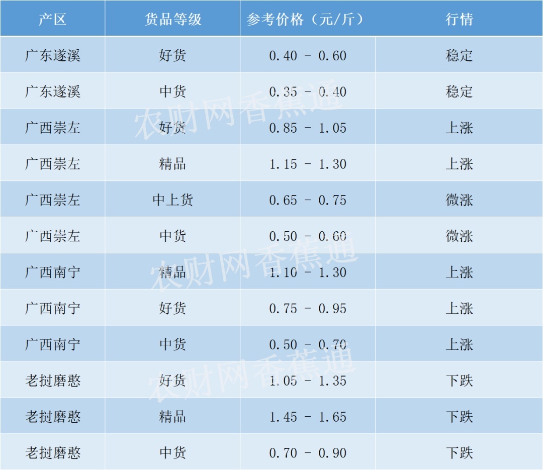 以上价格仅供参考,并据行情和质量而定,具体成交价还需根据实际情况进行协商确定。如与市场价差过大,欢迎联系小蕉君反馈。